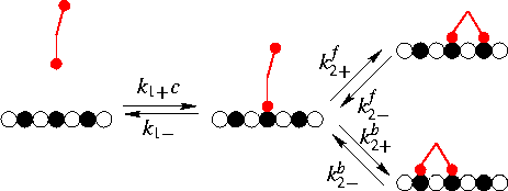 - No explicit diffusion: K1=0.1, K2=1000, association of the second head only to one side